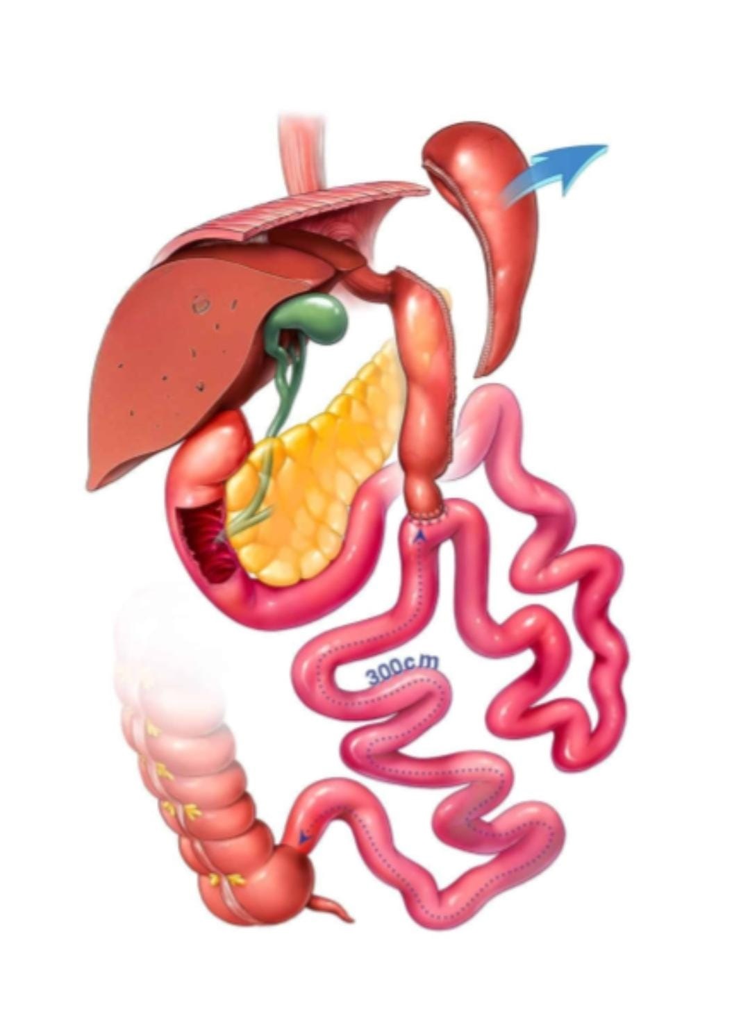 Como é feita a cirurgia: No bypass gástrico, o estômago é reduzido e transformado em um reservatório menor, com capacidade aproximada de 30 a 50 ml. Esse novo estômago é conectado diretamente a uma parte mais avançada do intestino delgado, desviando o restante.